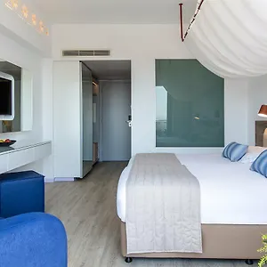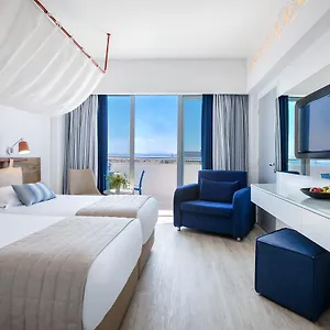 This Larnaca hotel offers 175 rooms with a minibar fridge, coffee and tea making equipment, and such modern conveniences as a flat-screen TV with satellite channels. Furnished with a writing table, they also have sound-proofed windows. The modern bathrooms include a tub, a separate toilet, and a shower, along with comforts such as shower caps and bath sheets. Staying at this modern property, guests can enjoy view of the sea.